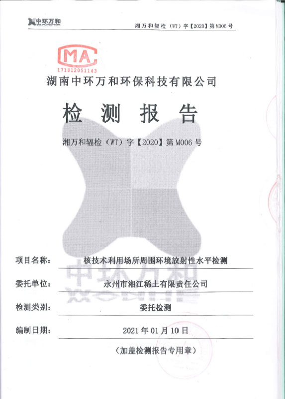 永州市湘江稀土有限責(zé)任公司放射性水平檢測報告